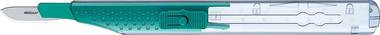 Steril, egyszer használatos szike műanyag nyéllel és pengevédővel, Fig. 10 szénacél pengével