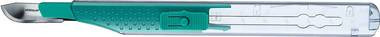 Steril, egyszer használatos szike műanyag nyéllel és pengevédővel, Fig. 19 szénacél pengével