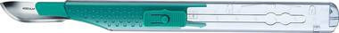 Steril, egyszer használatos szike műanyag nyéllel és pengevédővel, Fig. 21 szénacél pengével